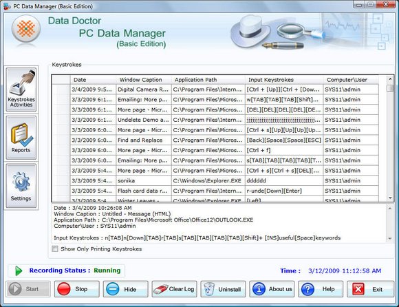 Computer Keyboard Tracking Software - Version 4.0.1.5 Computer keyboard tracking software tracks visited websites, typed url, Unicode passwords into a hidden encrypted logfile and log can be save as user specified location on local system . Undetectable keylogger spy tool monitors all keyboard typed character including special characters (%^&!@#$*) and functional characters (F1, F2… F12). Download keystroke recorder utility works with all windows operating system including windows Vista (Home Basic, Home Premium, Business, Ultimate, Enterprise, Starter), XP, ME, NT, 2000, 98 etc. Keyboard character capture application records all activities done by employees, children and spouses in your absence. Computer keyboard tracking software records multiple user accounts and work as a stealth mode. Keystroke capture utility hides its installation files and folders from start menu, desktop, control panel and add/remove program. Multifunctional keylogger application provides interactive GUI interface and useful for both technical and nontechnical users.Features:* Computer keyboard tracking software tracks all keyboard typed keys including special character alt, tab, ctrl etc.* Keylogger program saves typed url and visited websites into a hidden encrypted log file and also maintain logfile for future use.* Keystroke capture tool records secret email addresses, chat conversations with session, time, date from all instant messenger like Gmail, Yahoo, AOL, MSN etc.* Computer keyboard tracking utility is not visible by any unauthorized users because it not appears on start menu and desktop.* Download keylogger software is useful for both office and home purpose to monitor employees and spouses activities on PC in your absence.* Keystroke monitoring utility is not detected by any antivirus and bypasses all anti keylogger security.