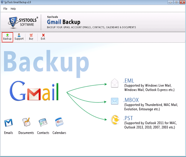 How Can I Export/Backup Gmail Emails - Version 2.0 Whenever a Gmail user is thinking to export/backup gmail emails to an external hard disk then use the handiest Gmail backup tool that assists you to create all email backups of Gmail account and save all email data into EML, MBOX or PST file format. Gmail backup tool provides two backup options including Add Date Filter and Delete After Backup:• Add Date Filterp options: You can take email a backup of a specific date. • Delete After Backup options: After taking software, tool will be deleted your email for spacing server.By using demo version of Gmail backup tool, you can take backup of 25 iterm per folder of Gmail account. If you want to complete backup of Gmail account then buy the full version of Gmail backup tool which is available at $12.