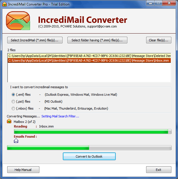 How to convert IncrediMail to Thunderbird - Version 6.01 When users having need to convert IncrediMail to MBOXThunderbird then there might possibility that they wishto know How to convert IncrediMail to Thunderbird andsearch HOT conversion program. In the situation,IncrediMail Conversion Tool is prepared for users toconvert IncrediMail IMM to Thunderbird. The IncrediMail2 Thunderbird Tool helps you for How to convertIncrediMail to Thunderbird easily. With the IncrediMailinto MBOX Conversion tool users would simply convertunlimited IMM IncrediMail emails into Thunderbird atonce, using its batch approach. The tool offers trialversion to know How to convert IncrediMail toThunderbird before purchasing complete edition. TheIncrediMail Converter tool easily solves entire queriesfor your mind – how to convert IncrediMail toThunderbird, How to convert IncrediMail emails toThunderbird, how to convert IncrediMail imm toThunderbird, etc. Purchase complete edition of theIncrediMail to Thunderbird Conversion tool, at 99USD.
