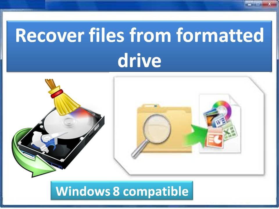 Recover Files From Formatted Drive - Version 4.0.0.32 Recover your deleted /formatted files from Hard Drives used on Windows PC. Recover Files From Formatted Drive tool to restores more than 300 types of files including photos, videos, audios, documents etc from formatted drives. This revival tool is specially developed to rescue formatted, damaged, re-formatted, or inaccessible hard drive partitions and also promising to restore files from the formatted external hard drives like SATA, SCSI, a
