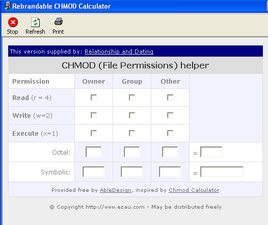 Relationship and Dating CHMOD Calculator - Version 1.0 Download free relationship, marriage, friendship, divorce, love, communication, conflict, affairs, dating, friends, CHMOD calculator for internet explorer.