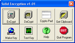 Solid Encryption - Version 1.21 This gives you access to unbreakable OTP encryption. You can encrypt to and from files or directly to the clipboard. Paste cipher-text directly into text documents. Generate real random keys with no more than a radio and a sound card. One-Time Pad (OTP) encryption a.k.a. infinite key encryption. OTP encryption is absolutely unbreakable if used correctly. This system is well known and has been used for a long time by various intelligence agencies