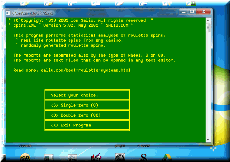 Super Roulette Strategy - Version 5.02 Super Roulette Strategy: Winning Free Roulette Systems. The FREE winning roulette systems in this collection are based on mathematics of Fundamental Formula of Gambling (FFG) and betting progressions. Accompanied by unique, dedicated software.A) The probability p for a single zero roulette game is: p = 1/37 = 0.027.We apply the Fundamental Formula of Gambling to one value of DC (degree of certainty): 66.6% (or 2/3, 2 out of 3 cases). For DC = 66.6%: N = 40.4 (rounded up to 41 spins). There is a 66.6% (2 in 3) chance that each roulette number will repeat after 41 spins. Equivalently, there is a 66.6% chance that the next spin will be a number that also appeared within the last 41 spins. B) The probability p for a double zero roulette game is: p = 1/38 = 0.026.We apply the Fundamental Formula of Gambling to one value of DC (degree of certainty): 66.6% (or 2/3). For